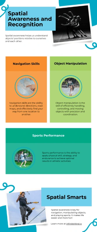 Spatial awareness, by contrast, is a body-based skill. It governs how you perceive your body’s position in space and how you move in relation to objects and people. Activities like catching a ball, navigating through a crowded space, or maintaining balance depend heavily on spatial awareness.